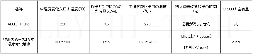 新型の変換触媒ALGC-T 1865は、4年間の実験室にの研究開発、2年間の改良、2年間のサイドストリームの実験を経て、ついに決まった形になって工業化生産に入り、伝統的な中温度変化触媒の使用過程における、硫黄放出による規準を超えた現象を解決しました。燃料電池分野で最適な水素の出所であると同時に、触媒ALGC?T1865には重金属クロムが含まれておらず、環境に優しいので、海外ハイエンド市場への使用が便利です。
